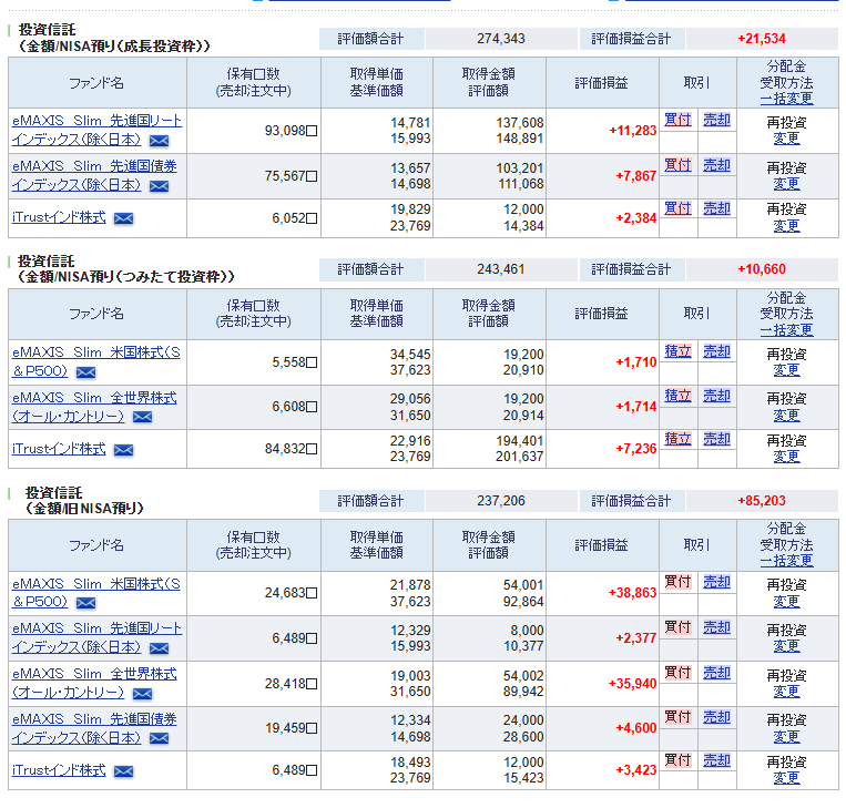 - eMAXIS Slim 全世界株式 : 全世界どこかは景気が良いので分散