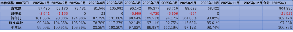 2025年10月の太陽光発電収入の結果をお知らせします。
