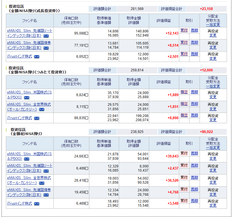 - eMAXIS Slim 全世界株式 : 全世界どこかは景気が良いので分散