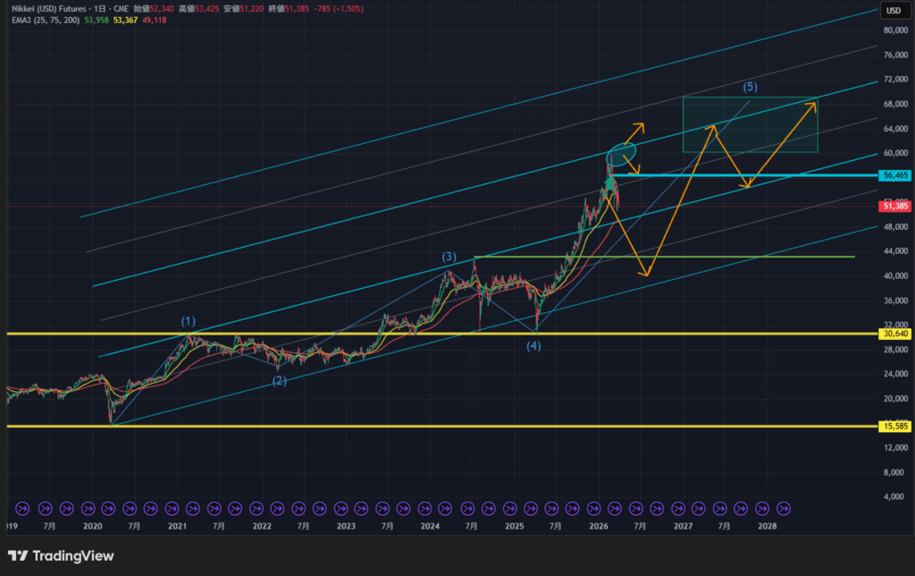 1波の延長だから2波の修正は小さめで続く3,4,5波もそんなに強くなくて横横に見えるかもしれませんね。そうなってきちゃうと買い場がなさ過ぎて困る感じになりそう。高値掴みのリスクはあるけど、一部を日経連動商品に移すことにします。