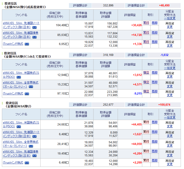 - eMAXIS Slim 全世界株式 : 全世界どこかは景気が良いので分散